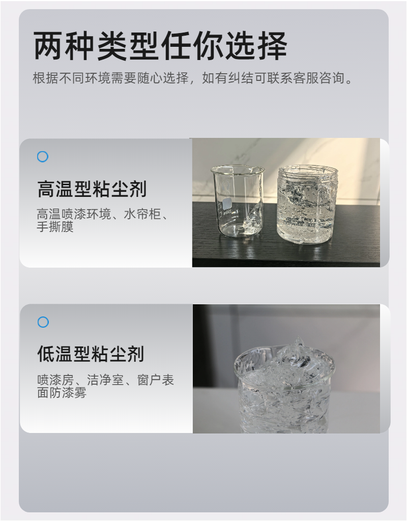 粘尘剂是一种专用于捕获并固定悬浮颗粒(如漆雾、粉尘、微粒)的功能性液体涂层,广泛应用于喷漆房、洁净车间、印刷及医药生产等对空气洁净度要求高的场景。其核心价值在于替代传统频繁清洁或高能耗过滤设备,实现低成本、高效率的源头抑尘。